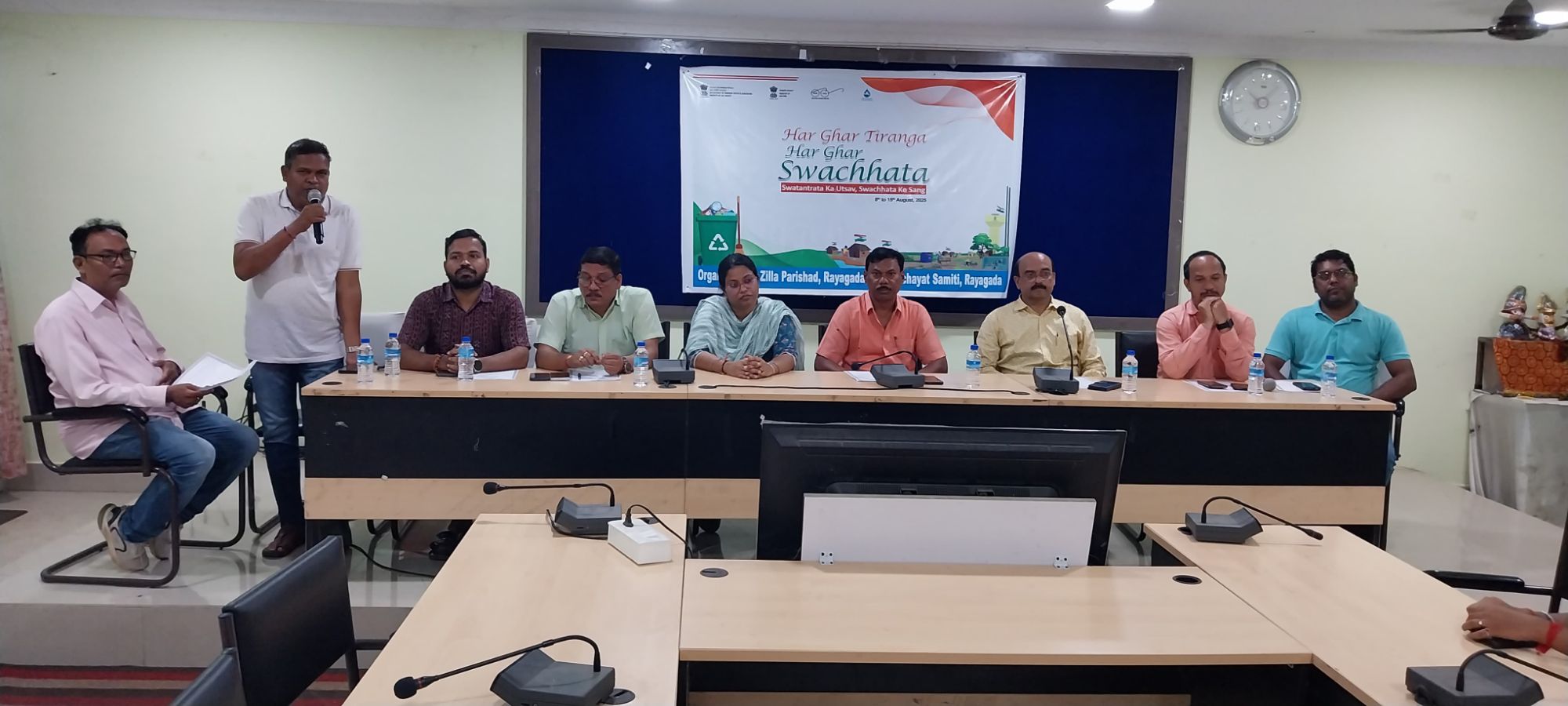 ରାୟଗଡ଼ ଜିଲ୍ଲା ପ୍ରଶାସନ ତଥା ରାୟଗଡ଼ ବ୍ଳକ ତରଫରୁ ଶୁକ୍ରବାର ଘରେ ଘରେ ତ୍ରିରଙ୍ଗା , ଘରେ ଘରେ ସ୍ଵଚ୍ଛତା ଅଭିଯାନ ଅନୁଷ୍ଠିତ ହୋଇଯାଇଅଛି। ଏଥି ନିମନ୍ତେ ଏକ ଶୋଭାଯାତ୍ରା ଜିଲ୍ଲା ପରିଷଦ ଠାରୁ ବାହାରି ଜିଲ୍ଲାପାଳଙ୍କ କାର୍ଯ୍ୟାଳୟ ରାସ୍ତା, ଗାନ୍ଧୀନଗର ବନଖଣ୍ଡ ଅଧିକାରୀଙ୍କ ବାସଭବନ, ଆରକ୍ଷୀ ଅଧିକ୍ଷକଙ୍କ ବାସଭବନ ରାସ୍ତା ଦେଇ ପଞ୍ଚାୟତ ସମିତି କାର୍ଯ୍ୟାଳୟ ରେ ପହଞ୍ଚିଥିଲା। ବ୍ୟାନର, ତ୍ରିରଙ୍ଗା, ପ୍ଲାକାର୍ଡ ଓ ସ୍ଲୋଗାନରେ ମୁଖରିତ ଶୋଭାଯାତ୍ରା ସ୍ଵଚ୍ଛତାର ବାର୍ତ୍ତା ବହନ କରି ଜନସଚେତନତା ସୃଷ୍ଟି କରିଥିଲା । ସମସ୍ତ ଅଂଶଗ୍ରହଣକାରୀଙ୍କୁ ନେଇ ପଞ୍ଚାୟତ ସମିତି ସଦଭାବନା ଗୃହରେ ଏକ ସାଧାରଣ ସଭାର ଆୟୋଜନ କରାଯାଇଥିଲା। ଅତିରିକ୍ତ ଜିଲ୍ଲାପାଳ ଶ୍ରୀଯୁକ୍ତ ନବୀନ ଚନ୍ଦ୍ର ନାଏକ ମୁଖ୍ୟ ଅତିଥି ଭାବେ ଯୋଗଦେଇ ଜୀବନରେ ଓ ସମାଜରେ ସ୍ଵାଧୀନତା ଓ ସ୍ଵଚ୍ଛତାର ଆବଶ୍ୟକତା ବିଷୟରେ ସଚେତନ କରିଥିଲେ। ବରେଣ୍ୟ ଅତିଥି ଭାବେ ଉପ ନିର୍ଦ୍ଦେଶକ ତଥା ଜିଲ୍ଲା ସୂଚନା ଓ ଲୋକସମ୍ପର୍କ ଅଧିକାରୀ ବସନ୍ତ କୁମାର ପ୍ରଧାନ, ଅତିରିକ୍ତ ପ୍ରକଳ୍ପ ନିର୍ଦ୍ଦେଶିକା ମନିଷା ଦାସ, ବିଜୟ କୁମାର ନାୟକ, ରଶ୍ମି ରଞ୍ଜନ ପରିଡା , ପ୍ରଭାତ ଲେଙ୍କା, ନିହାର ରଞ୍ଜନ ତ୍ରିପାଠୀ, ଲକ୍ଷ୍ମୀନାରାୟଣ ଦୋରା, ରାୟଗଡ଼ ଗୋଷ୍ଠୀ ଉନ୍ନୟନ ଅଧିକାରୀ ସୁଜିତ କୁମାର ମିଶ୍ର ପ୍ରମୁଖ ମଞ୍ଚାସୀନ ଥିଲେ। ବୈଠକ ପ୍ରାରମ୍ଭରେ ଛାତ୍ରୀଙ୍କ ଦ୍ଵାରା ସ୍ଵଚ୍ଛତା ସମ୍ପର୍କିତ ପ୍ରାରମ୍ଭିକ ସଙ୍ଗୀତ ପରିବେଷଣ କରାଯାଇଥିଲା। ବିଦ୍ୟାଳୟର ଛାତ୍ର ଛାତ୍ରୀ ଘରେ ଘରେ ତ୍ରିରଙ୍ଗା ଓ ସ୍ଵଚ୍ଛତା ବିଷୟରେ ବକ୍ତୃତା ପ୍ରଦାନ କରିଥିଲେ। ମୁଖ୍ୟ ଅତିଥି ଉପସ୍ଥିତ ଅଂଶଗ୍ରହଣକାରୀଙ୍କୁ ସ୍ଵଚ୍ଛତା ଶପଥପାଠ କରାଇଥିଲେ। ଅତିଥି ବୃନ୍ଦ ନିଜ ଶରୀର ସହ ଘର, ଗାଁ ଓ ପରିବେଶକୁ ସ୍ବଚ୍ଛ ରଖିବାର ଆବଶ୍ୟକତା କିପରି ଦେଶର ବିକାଶରେ ସହାୟକ ହୋଇଥାଏ, ଘରେ ଘରେ ତ୍ରିରଙ୍ଗାର ଆବଶ୍ୟକତା ବିଷୟରେ ଆଲୋଚନା କରିଥିଲେ । ଏହି କାର୍ଯ୍ୟକ୍ରମ ଆଠ ତାରିଖ ଠାରୁ ସ୍ବାଧୀନତା ଦିବସ ପର୍ଯ୍ଯନ୍ତ ପ୍ରତ୍ୟେକ ସ୍ଥାନରେ ପାଳନ କରାଯିବ ବୋଲି ବିଡିଓ ସୁଜିତ କୁମାର ମିଶ୍ର କହିଛନ୍ତି । ଉଭୟ ରାୟଗଡ ବ୍ଲକ ଓ ଜିଲ୍ଲା ପରିଷଦର କର୍ମକର୍ତ୍ତା, ବିଦ୍ୟାଳୟର ଛାତ୍ରଛାତ୍ରୀ ବୃନ୍ଦ ଏଥିରେ ଯୋଗ ଦେଇଥିଲେ ।
