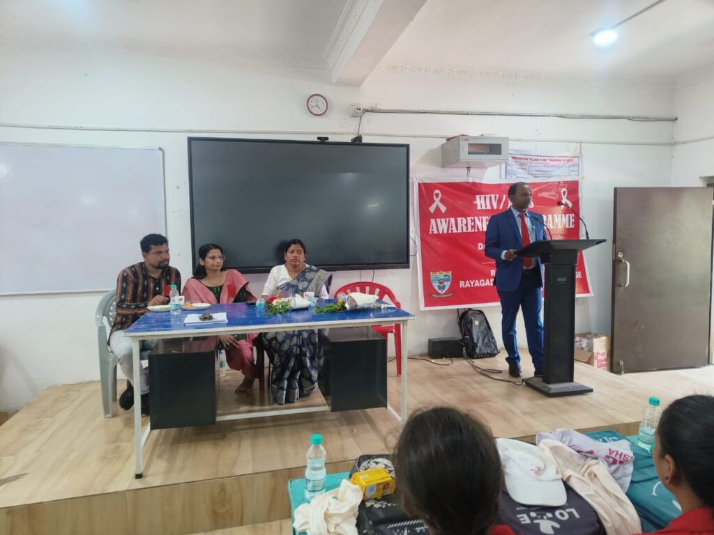 “ ସଚେତନ ହୁଅ, ସୁରକ୍ଷିତ ରୁହ ”, “ଜ୍ଞାନ ହିଁ ସୁରକ୍ଷା, ଅଜ୍ଞାନ ହେଉଛି ବିପଦ” ପରି ସ୍ଲୋଗାନ ଉଚ୍ଚାରଣ କରିଥିଲେ। ତା’ପରେ କଲେଜ୍ ସଭାଗୃହରେ ବିଶେଷ ସଚେତନ ସଭା ଆୟୋଜିତ ହୋଇଥିଲା। ଏଥିରେ ମହାବିଦ୍ୟାଳୟର ଅଧ୍ୟକ୍ଷା ତଥା ଯୁବ ରେଡ୍ କ୍ରସ ରାୟଗଡା ଜିଲ୍ଲା ଚେୟାରମେନ ଡ଼. ସରସ୍ଵତୀ ରାୟ ଉଦଘାଟନୀ ଭାଷଣରେ ଏଚ୍. ଆଇ.ଭି/ଏଡ଼ସ୍ ସମସ୍ୟାକୁ ସମାଜର ଅନ୍ଧ ବିଶ୍ବାସ, ଅଜ୍ଞାନତା, ଭ୍ରାନ୍ତି ଓ ଅବହେଳା ଯୋଗୁଁ ବର୍ତ୍ତମାନ ବିଶ୍ଵର ଏକ ବିଶାଳ ସମସ୍ୟାରେ ପରିଣତ ହେବାକୁ ଯାଉଛି, ତେଣୁ ଯୁବ ପିଢ଼ୀଙ୍କୁ ସଚେତନତା ଭଳି ମୁଖ୍ୟ ଅସ୍ତ୍ରକୁ ଅଙ୍ଗୀକାର କରିବାକୁ ଆହ୍ୱାନ କରିଥିଲେ । ତତ୍ ସହ ଛାତ୍ରଛାତ୍ରମାନଙ୍କୁ ସଚେତନ ହୋଇ ଏହି ବାର୍ତ୍ତା କୁ ସମାଜରେ ପ୍ରସାର କରିଲେ ନିଶ୍ଚିତ ଏହି ସମସ୍ୟାର ସମାଧାନ ହୋଇପାରିବ ବୋଲି ମତପ୍ରକାଶ କରିଥିଲେ।ମୁଖ୍ୟ ବକ୍ତା ଭାବେ ଭାମସି ଇନଷ୍ଟିଚ୍ୟୁଟ ଅଫ ମ୍ୟାନେଜମେଣ୍ଟ ଷ୍ଟଡିଜ୍ ର ଅଧ୍ୟକ୍ଷ ପ୍ରଫେସର୍ କରୁଣାକର କରକରିଆ ଏଚ୍. ଆଇ.ଭି/ଏଡ଼ସ୍ର ର କାରଣ, ତାହାର ପ୍ରତିରୋଧ, ସୁରକ୍ଷିତ ଆଚରଣ ଓ ସମାଜରେ ଥିବା ଭ୍ରାନ୍ତିକୁ ଦୂର କରିବା ବିଷୟରେ ଗଭୀର ବିଶ୍ଲେଷଣାତ୍ମକ ଭାଷଣ ଉପସ୍ଥାପନ କରିଥିଲେ । ସେ କହିଥିଲେ – “ଏଚ୍. ଆଇ.ଭି/ଏଡ଼ସ୍ ଏକ ରୋଗ ନୁହେଁ, ବରଂ ସମାଜିକ ସମସ୍ୟା” । ସଚେତନତା ଓ ସହାନୁଭୂତି ଦ୍ୱାରା ଆମେ ଏହାକୁ ପରାଜିତ କରିପାରିବୁ।” ଯୁବ ରେଡ୍ କ୍ରସର ଜିଲ୍ଲା ସଂଯୋଜକ ଅଧ୍ୟାପକ ଟିକେଶ୍ୱର ମାଝୀ ଛାତ୍ରଛାତ୍ରୀମାନଙ୍କୁ ଏଚ୍. ଆଇ.ଭି/ଏଡ୍ ସ୍ ବିଷୟରେ ସଚେତନ ହେବା ସହିତ ସମାଜରେ ସଚେତନତା ପ୍ରଚାର କରିବାକୁ ଉତ୍ସାହିତ କରିଥିଲେ। କାର୍ଯ୍ୟକ୍ରମର ଶେଷରେ ଯୁବ ରେଡ୍ କ୍ରସ ପରାମର୍ଶଦାତା ଅଧ୍ୟାପିକା ପ୍ରିୟଦର୍ଶିନୀ ବଳ ସମସ୍ତ ଅତିଥି, ଅଧ୍ୟାପକ, ଛାତ୍ରଛାତ୍ରୀ ଓ ସ୍ବେଛାସେବୀ ମନଙ୍କୁ ହୃଦୟପୂର୍ବକ ଧନ୍ୟବାଦ୍ ଅର୍ପଣ କରିଥିଲେ। କାର୍ଯ୍ୟକ୍ରମରେ ବିଭିନ୍ନ ବିଭାଗର ଅଧ୍ୟାପକ ଅଧ୍ୟାପିକା, ଯୁବ ରେଡ୍ କ୍ରସ ସ୍ବେଛାସେବୀ ଓ ସହସ୍ରାଧିକ ଛାତ୍ରଛାତ୍ରୀ ସକ୍ରିୟ ଭାବରେ ଯୋଗଦେଇଥିଲେ।