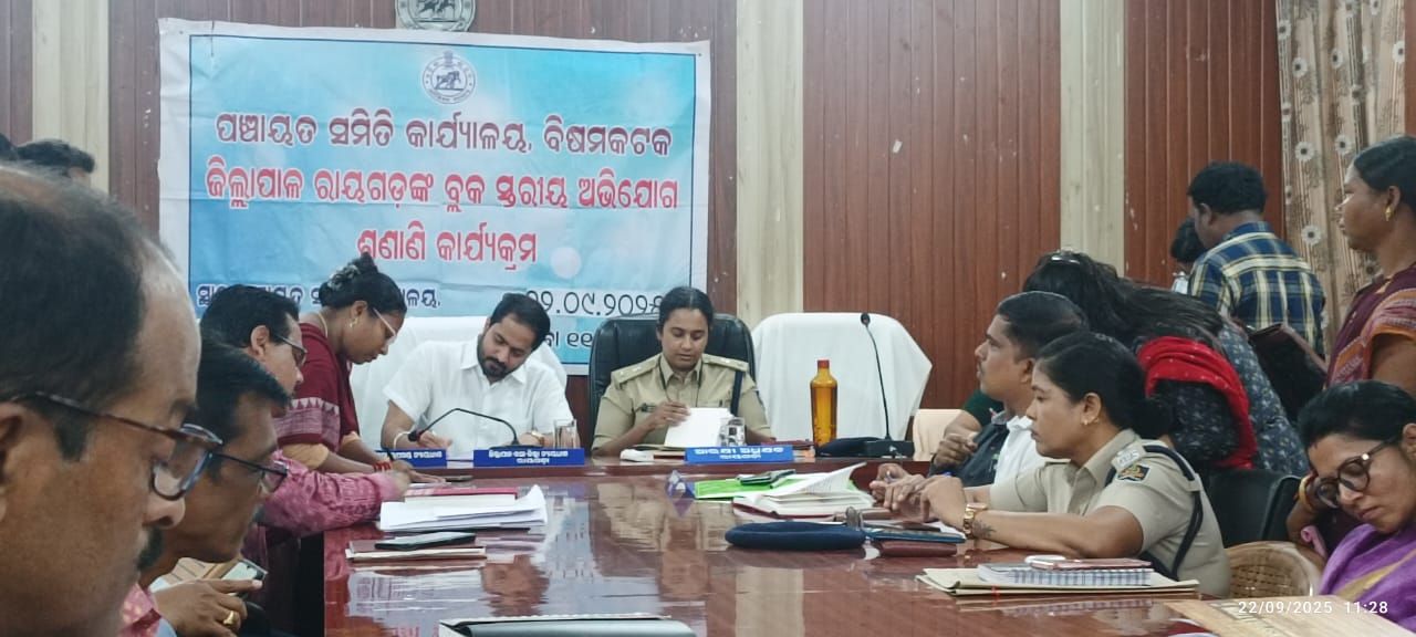 ବିଷମକଟକ / ରାୟଗଡ ଜିଲ୍ଲା (ଆମ ଓଡିଶା ଖବର) ତା: ୨୨-୦୯-୨୦୨୫ରିଖ ଦିନ ବିଷମକଟକ ବ୍ଲକ ସଭାଗୃହଠାରେ ଯୁଗ୍ମ ଅଭିଯୋଗ ଶୁଣାଣୀ ଶିବିର ଅନୁଷ୍ଠିତ ହୋଇ ଯାଇଛି । ଜିଲ୍ଲାପାଳ ଆଶୁତୋଷ କୁଲକର୍ଣ୍ଣିଙ୍କ ଅଧ୍ୟକ୍ଷତାରେ ଅନୁଷ୍ଠିତ ଏହି ଶିବିର ରେ ଆରକ୍ଷୀ ଅଧିକ୍ଷକ ସ୍ୱାଥି ଏସ କୁମାର, ଜିଲ୍ଲା ମୁଖ୍ୟ ଉନ୍ନୟନ ତଥା ନିର୍ବାହୀ ଅଧିକାରୀ ଅକ୍ଷୟ କୁମାର ଖେମୁଣ୍ଡୁ, ଗୁଣପୁର ଉପ ଜିଲ୍ଲାପାଳ ଦୁଧାଳ ଅଭିଷେକ ଦିଲିପ, ଗୁଣପୁର ସମନ୍ବିତ ଆଦିବାସୀ ଉନ୍ନୟନ ସଂସ୍ଥା ପ୍ରକଳ୍ପ ପ୍ରଶାସକ ଅଜୟ କୁମାର ପ୍ରଧାନ, ଜିଲ୍ଲା ମୁଖ୍ୟ ଚିକିତ୍ସା ତଥା ଜନ ସ୍ଵାସ୍ଥ୍ୟ ଅଧିକାରୀ ଭି ସରୋଜିନୀ ଦେବୀ ଯୋଗଦେଇ ସମସ୍ତ ଅଭିଯୋଗର ଶୁଣାଣୀ କରିଥିଲେ। ଆଜି ମୋଟ ୭୮ ଟି ଅଭିଯୋଗ ର ଶୁଣାଣୀ ହୋଇଥିବା ବେଳେ, ସେଥିରୁ ୬୩ଟି ବ୍ୟକ୍ତିଗତ୦୭ଟି ସାମୁହିକ ଦରଖାସ୍ତ ଓ ୦୮ଟି ସ୍ୱାସ୍ତ୍ୟଗତ ଦରଖାସ୍ତ ପଞ୍ଜିକରଣ ହୋଇଥିଲା । ମୋଟ ଆଠଜଣଙ୍କୁ ଜିଲ୍ଲାପାଳ ୭୫୦୦୦ଟଙ୍କାର ରେଡ଼କ୍ରସ ସହାୟତା ରାଶି ପ୍ରଦାନ କରିଥିଲେ ।ସମସ୍ତ ଅଭିଯୋଗ ଜିଲ୍ଲାପାଳ ଗ୍ରହଣ କରିବା ପରେ ଅଭିଯୋଗ ଗୁଡିକୁ ତଦନ୍ତ କରି ତୁରନ୍ତ ପଦକ୍ଷେପ ଗ୍ରହଣ କରିବା ନିମନ୍ତେ ସମ୍ପୃକ୍ତ ଅଧିକାରୀଙ୍କୁ ଦରଖାସ୍ତ ଗୁଡିକ ପ୍ରଦାନ କରି କାର୍ଯ୍ୟାନୁଷ୍ଠାନ ଗ୍ରହଣ କରିବା ନିମନ୍ତେ ନିର୍ଦ୍ଦେଶ ଦେଇଥିଲେ ।