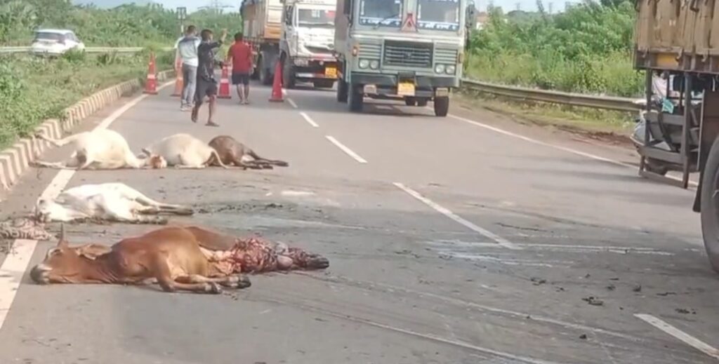 ଗୋରୁଗାଈଙ୍କ ଉପରେ ଚଢିଗଲା ଟ୍ରକ । ୧୦ ଗୋରୁଗାଈଙ୍କ ମୃତ୍ୟୁ ବହୁ ଆହତ।