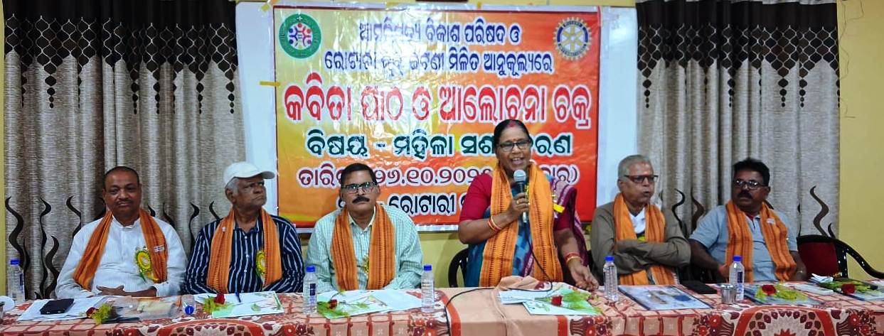 ମହିଳାମାନେ ଆଦର୍ଶ ସୁସ୍ଥ ସମାଜ ଗଠନ ପାଇଁ ପ୍ରୟାସ ଜାରୀ ରଖିବାରେ ବେଦ,ପୁରାଣ ଓ ଆଧୂନିକ ଯୁଗର ନାରୀଙ୍କ ଭୂମିକା ଉପରେ ମୁଖ୍ୟ ଅତିଥି ପଣ୍ଡିତ ରମାକାନ୍ତ ମିଶ୍ର ନିଜର ବକ୍ତବ୍ୟ ରଖିଥିଲେ। ଏହି ଆଲୋଚନା ଚକ୍ରରେ ଆୟୋଜକ ରୋଟାରିଆନ୍ ଆଦିନାରାୟଣ ଖଣ୍ଡୁଆଳ ସ୍ୱାଗତ ଓ ଅତିଥି ପରିଚୟ ଦେଇଥିଲେ ।ଅନ୍ୟାନ୍ୟ ଅତିଥିଙ୍କ ମଧ୍ୟରେ ରୋଟାରିକ୍କବର ସଭାପତି ପ୍ରସାଦ ଜଗଦେବ, ରୋଟାରିଆନ ରାଧାମୋହନ ପଟ୍ଟନାୟକ ପ୍ରମୁଖ ନିଜର ବକ୍ତବ୍ୟ ରଖିଥିଲେ । ମହିଳା ସଶକ୍ତିକରଣ ଉପରେ ଆଇନ ଅଧିକାରୀ ବିରଜା ପ୍ରସାଦ ଦାଶ, ଡାକ୍ତର ସୁବ୍ରତା ପାତ୍ର, ପଦ୍ମଲୋଚନ ସାହୁ, ଡ.ସୁକାନ୍ତି ମହାପାତ୍ର, ତ୍ରିଲୋଚନ ମହାପାତ୍ର, ବ୍ରଜବନ୍ଧୁ ନାୟକ, ନର୍ମଦା ଦୋରା, ବିଜୟାନନ୍ଦ ପଟ୍ଟନାୟକ ପ୍ରମୁଖ ଆଲୋଚନାରେ ଭାଗ ନେଇ ନିଜର ମତାମତ ପ୍ରକାଶ କରିଥିଲେ। ଶିକ୍ଷାବିତ ଜବାହାରଲାଲ ସୁବୁଦ୍ଧି ଧନ୍ୟବାଦ ଅର୍ପଣ କରିଥିଲେ। ପ୍ରଥମ ପର୍ଯ୍ୟାୟରେ କବି ବିଭୁପ୍ରସାଦ ହରିଚନ୍ଦନ, ଶିକ୍ଷୟତ୍ରୀ ଡ଼.ରଶ୍ମିତା ନାୟକ ଓ କବି ପଦ୍ମଲୋଚନ ସାହୁଙ୍କ ସଂଯୋଜନାରେ ଦେବଯାନୀ ରାୟ ,ଡ.ପ୍ରଭାସ ପ୍ରଧାନ, ଦିତିକୃଣ୍ଣ ମହାନ୍ତି, ପାଲା ଗାୟକ ସୁଦର୍ଶନ ମହାପାତ୍ର, ନର୍ମଦା ଦୋରା, ବେଣୁଧର ବେହେରା, ଜଗନ୍ନାଥ ନାୟକ, ଆଦିନାରାୟଣ ଖଣ୍ଡୁଆଳ, ରୋହିତ କୁମାର ଚମ୍ପତ୍ତି, ସୁରେଶ ଚନ୍ଦ୍ର ରଥ, ବାସୁଦେବ ସାହୁ, ଦିବ୍ୟଲୋଚନ ଭାରିମଲ୍ଲ ,ସୁଲିଆ ଦାଶ ପ୍ରମୁଖ କବିତା ପାଠ କରିଥିଲେ।ଡେଲାଙ୍ଗ/ ଜଟଣୀ ରୁ ନୀଳମ୍ବର ମିଶ୍ରଙ୍କ ରିପୋର୍ଟ ଆମ ଓଡିଶା ଖବର।