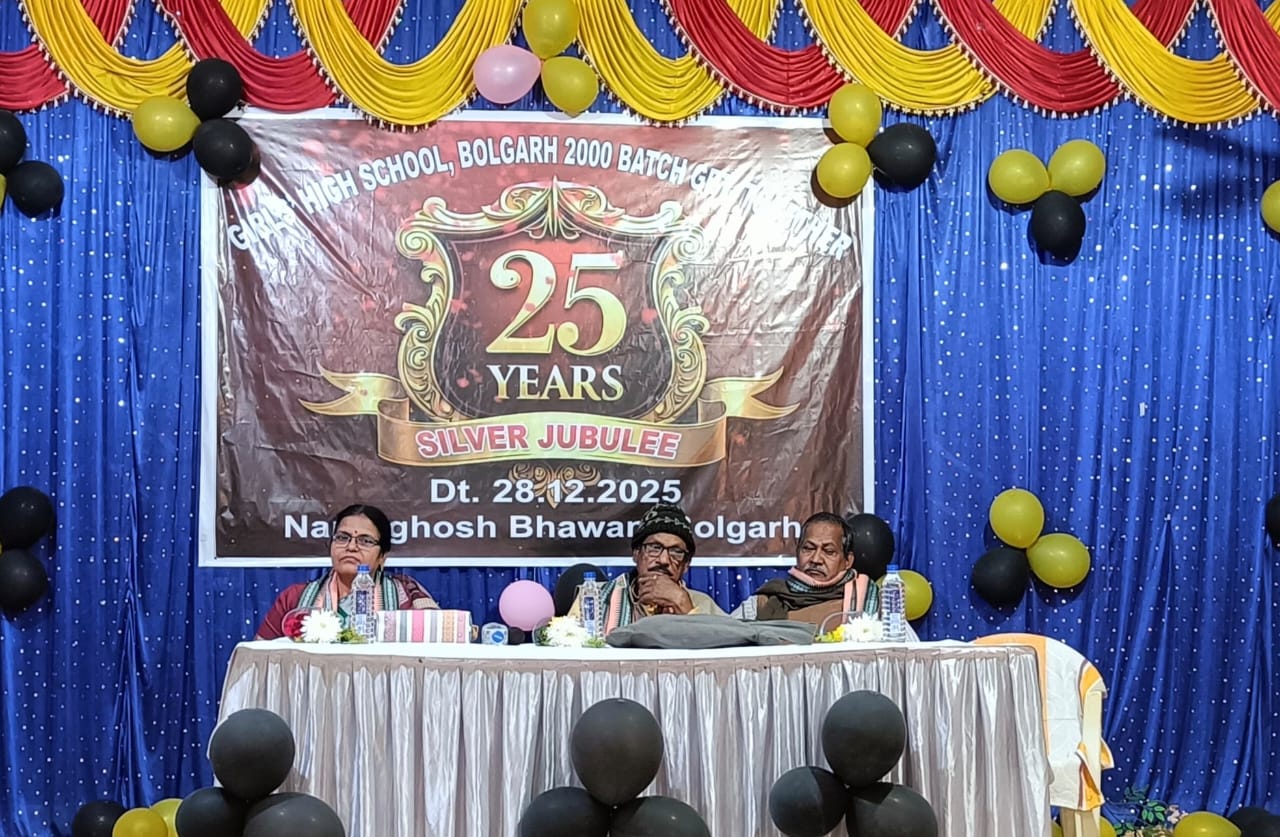 ବୋଲଗଡ଼,୨୮/୧୨: ଖୋର୍ଦ୍ଧା ଜିଲ୍ଲା ବୋଲଗଡ଼ ବ୍ଲକ ସ୍ଥାନୀୟ ନନ୍ଦୀଘୋଷ ଭବନ ପରିସରରେ ୨୦୦୦ ମସିହା ମହିଳା ମ୍ୟାଟ୍ରିକ ବ୍ୟାଚର ସିଲଭର ଯୁବୁଲି ବାସନ୍ତୀ ମହାନ୍ତିଙ୍କ ଆବାହକତ୍ୱରେ ଅନୁଷ୍ଠିତ ହୋଇଥିଲା। ମୁଖ୍ୟ ଅତିଥି ଭାବରେ ଶିକ୍ଷୟତ୍ରୀ ମୀରା ମଞ୍ଜରୀ ସାହୁ ଓ ସମ୍ମାନିତ ଅତିଥି ଭାବରେ ଶିକ୍ଷକ ବିରଞ୍ଚି ନାରାୟଣ ଚହଟ ରାୟ ଓ ଦାଶରଥି ପଣ୍ଡା ଯୋଗ ଦେଇଥିଲେ। ଅତିଥି ମାନେ ଜଗନ୍ନାଥଙ୍କ ପ୍ରତିମୂର୍ତ୍ତିରେ ପୁଷ୍ପ ମାଲ୍ୟ, ଦୀପ ଓ ଧୂପ ଅର୍ପଣ କରି ସଭା କାର୍ଯ୍ୟ ଆରମ୍ଭ କରିଥିଲେ। ଛାତ୍ରୀମାନେ ଶିକ୍ଷକଙ୍କୁ ଉପଢ଼ୌକନ ଓ ପୁଷ୍ପଗୁଚ୍ଛ ଦେଇ ସମ୍ମାନିତ କରିଥିଲେ । ଏହି ଅବସରରେ ବାମନ ଉଚ୍ଚ ବିଦ୍ୟାଳୟରେ ୨୦୦୦ ମସିହା ମ୍ୟାଟ୍ରିକ ବ୍ୟାଚରେ ପଢ଼ୁଥିବା ୧୦୦ରୁ ଉର୍ଦ୍ଧ ଛାତ୍ରୀମାନେ ଏକତ୍ରିତ ହୋଇ ପୁରୁଣା ସ୍ମୃତିକୁ ଉଜ୍ଜୀବିତ କରିଥିଲେ ।ଛାତ୍ରୀମାନଙ୍କ ଦ୍ଵାରା ସାଂସ୍କୃତିକ କାର୍ଯ୍ୟକ୍ରମ ପରିବେଷଣ କରା ଯାଇଥିଲା। ପ୍ରଥମା ପ୍ରିୟଦର୍ଶିନୀ ମଞ୍ଚ ପରିଚାଳନା କରି ଥିବା ବେଳେ ରୋଜାଲିନ ସୁବୁଦ୍ଧି ଧନ୍ୟବାଦ ଅର୍ପଣ କରିଥିଲେ।