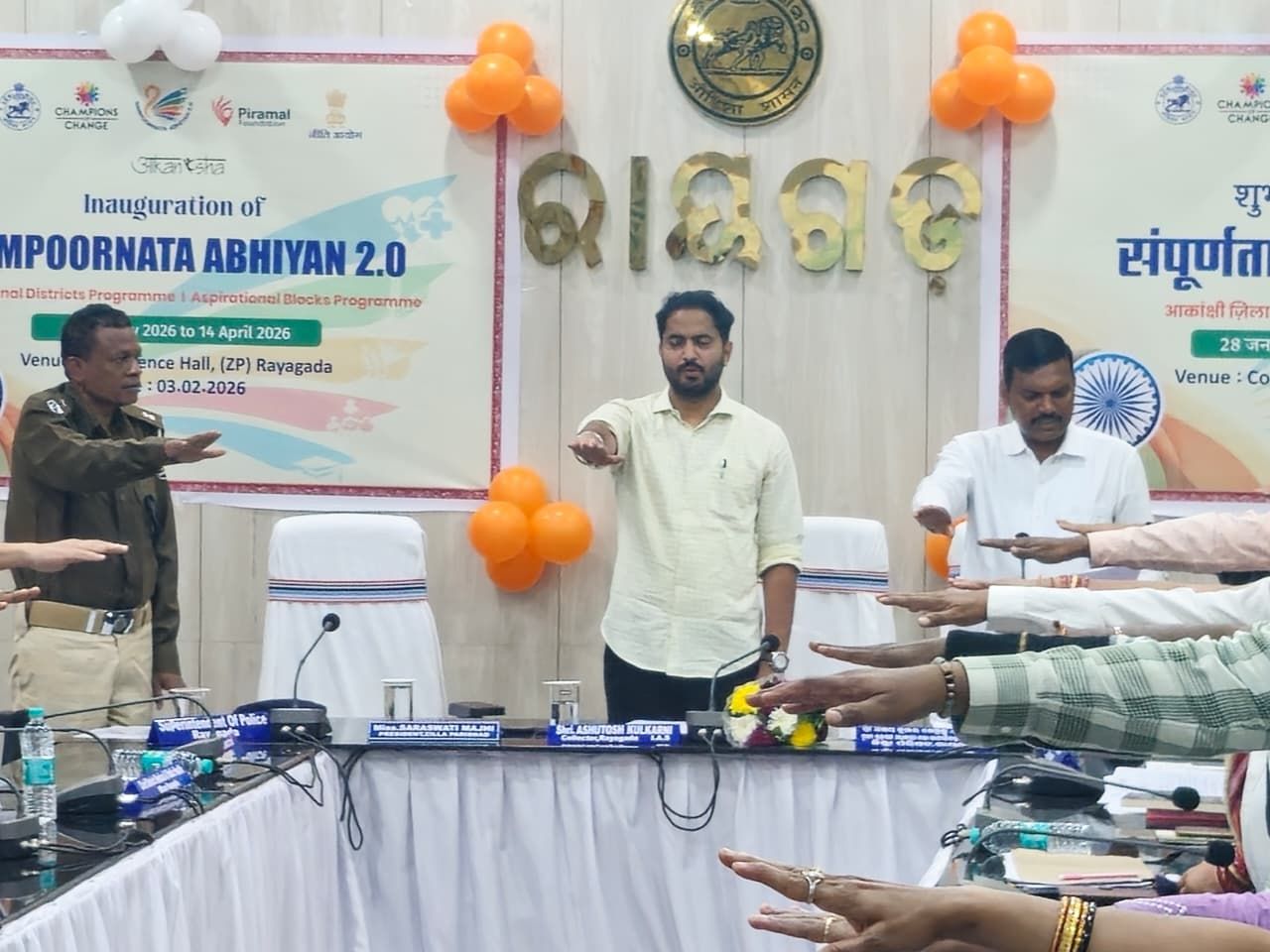 ରାୟଗଡ଼ ଜିଲ୍ଲା (ଆମ ଓଡିଶା ଖବର )ତା :-୦୩.୦୨.୨୦୨୬: ରାୟଗଡ଼ ଜିଲ୍ଲାପାଳ ଶ୍ରୀ ଆଶୁତୋଷ କୁଲକର୍ଣ୍ଣିଙ୍କ ଅଧ୍ୟକ୍ଷତାରେ ଜିଲ୍ଲା ପରିଷଦ ସଭାଗୃହରେ ସମ୍ପୂର୍ଣ୍ଣତା ଅଭିଯାନ ୨.୦ର ଉଦଘାଟନ ସମାରୋହ ଆୟୋଜିତ ହୋଇଛି। ଏହି ବୈଠକରେ ଜିଲ୍ଲା ମୁଖ୍ୟ ବିକାଶ ଓ ଉନ୍ନୟନ ଅଧିକାରୀ ଜିଲ୍ଲା ପରିଷଦ ରାୟଗଡ଼ ଶ୍ରୀ ଅକ୍ଷୟ କୁମାର ଖେମୁଣ୍ଡୁ, ଅତିରିକ୍ତ ଆରକ୍ଷ ଅଧୀକ୍ଷକ ଗୋସନର ବାର୍ଲା, ଜିଲ୍ଲା ଶିକ୍ଷା ଅଧିକାରୀ ରାମଚନ୍ଦ୍ର ନାୟକ,ଜିଲ୍ଲା ସାମାଜିକ କଲ୍ୟାଣ ଅଧିକାରୀ ଶ୍ରୀମତୀ ମୀନତି ଦେଓ, ଜିଲ୍ଲା ସୂଚନା ବିଜ୍ଞାନ ଅଧିକାରୀ ଶ୍ରୀ ଏନ ଗୁଣାଶେଖର, ଉପ ନିର୍ଦ୍ଦେଶକ ଯୋଜନା ଓ ପରିସଖ୍ୟାନ ଶ୍ରୀ ହିମାଂଶୁ ମୋହନ ଲେଙ୍କା, ଅତିରିକ୍ତ ଜିଲ୍ଲା ପ୍ରାଣୀସମ୍ପଦ ଅଧିକାରୀ, ଡି.ପି.ଏମ -ଏନ.ଏଚ.ଏମ ପ୍ରମୁଖ ଉପସ୍ଥିତ ଥିଲେ।