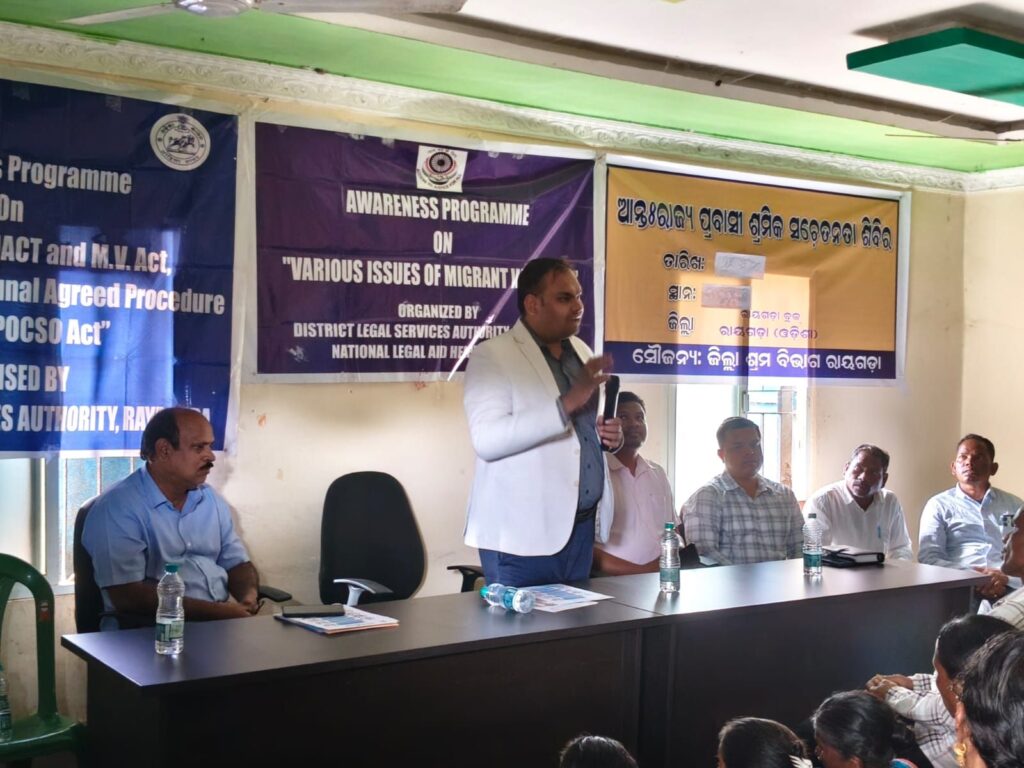 ରାୟଗଡା ଜିଲ୍ଲା(ଆମ ଓଡିଶା ଖବର )ଆଇନ୍ ସେବା ପ୍ରାଧିକରଣ ର ଅଧ୍ୟକ୍ଷ ତଥା ଜିଲ୍ଳା ଦୌରା ଜଜ୍ ଶ୍ରୀ ସତ୍ୟନାରାୟଣ ଷଡଙ୍ଗୀ ଙ୍କ ପରାମର୍ଶ କ୍ରମେ ଜିଲ୍ଲା ଆଇନ୍ ସେବା ପ୍ରାଧିକରଣ ଆନୁକୁଲ୍ୟରେ ଜିଲ୍ଲା ଆଇନ୍ ସେବା ପ୍ରାଧିକରଣ ର ସଚିବ ଶ୍ରୀ ସୁବ୍ରତ ଆଚାର୍ଯ୍ୟ ଙ୍କ ଅଧ୍ୟକ୍ଷତାରେ ଅଦ୍ୟ ତା-୨୫.୦୨.୨୦୨୬ ରିଖ ବୁଧୁବାର ଦିନ ଘ ୧୧.୦୦ମି ରେ ସ୍ଥାନୀୟ ବଡ ଇରକୁବାଡି ଗ୍ରାମ ପଞ୍ଚାୟତ ପରିସରରେ ଜିଲ୍ଲା ଆଇନ ସେବା ପ୍ରାଧିକରଣ, ରାୟଗଡା ଓ ଜିଲ୍ଲା ଶ୍ରମ ବିଭାଗ ମିଳିତ ଆନୁକୁଲ୍ୟରେ ଶ୍ରମ ଆଇନ ଏବଂ ପ୍ରବାସୀ ଶ୍ରମିକ, ସଡକ ସୁରକ୍ଷା, ଏମ୍.ଏ.ସିଟି, ଏମ୍.ଭି ଆକ୍ଟ, ଏମ୍.ସି.ଟି.ଏ.ପି, ସ୍ଥାୟୀ ଓ ନିରନ୍ତନ ଲୋକ ଅଦାଲତର କାର୍ଯ୍ୟକ୍ରମ ଉପରେ ଏକ ଆଇନ ସଚେତନତା ଶିବିର ଅନୁଷ୍ଟିତ ହୋଇଯାଇଛି I ଅନ୍ୟ ପ୍ରମୁଖ ଅତିଥି ମାନଙ୍କ ମଧ୍ୟରେ ରାୟଗଡା ଜିଲ୍ଲାର ଜିଲ୍ଳା ଶ୍ରମ ଅଧିକାରୀ ଶ୍ରୀ ରବିନ୍ଦ୍ରନାଥ ତ୍ରିପାଠୀ, ଜିଲ୍ଲାର ଅତିରିକ୍ତ ଶ୍ରମ ଅଧିକାରୀ, ବଡ ଇରକୁବାଡି ଗ୍ରାମ ପଞ୍ଚାୟତ ର ସରପଞ୍ଚ, ସମିତି ସଭ୍ୟ ଓ ଗ୍ରାମବାସୀ ପ୍ରମୁଖ ଉପସ୍ଥିତ ଥିଲେ I ନିଜର ବକ୍ତବ୍ୟରେ ରାୟଗଡା ଜିଲ୍ଲାର ଜିଲ୍ଳା ଶ୍ରମ ଅଧିକାରୀ ଶ୍ରୀ ରବିନ୍ଦ୍ରନାଥ ତ୍ରିପାଠୀ ଶ୍ରମିକ ମାନଙ୍କ ପାଇଁ ଉପଲବ୍ଧ ଥିବା ସରକାରଙ୍କ ର ବିଭିନ୍ନ ଜନମଙ୍ଗଳକାରୀ ଯୋଜନା ଉପରେ ଆଲୋକପାତ କରିଥିଲେ I ସେହିପରି ଉପସ୍ଥିତ ଥିବା ଜିଲ୍ଲା ଆଇନ୍ ସେବା ପ୍ରାଧିକରଣ ର ସଚିବ ଶ୍ରୀ ସୁବ୍ରତ ଆଚାର୍ଯ୍ୟ ନିଜର ବକ୍ତବ୍ୟରେ ସଡକ ସୁରକ୍ଷା, ମୋଟରଯାନ ଆଇନ୍ (Motor Vehicle Act) କୁ ନେଇ ପୁଙ୍ଖାନୁପୁଙ୍ଖ ଭାବେ ଆଲୋଚନା କରିବା ସଙ୍ଗେ ସଙ୍ଗେ କ୍ଷତିଗ୍ରସ୍ତଙ୍କ ନିକଟରେ ମଟର ଦୁଘଟଣା ଜନିତ କ୍ଷତିପୂରଣ ର ଶିକାର ହେଉଥିବା ପିଡିତା ମାନଙ୍କୁ ପ୍ରଦାନ କରାଯାଉଥିବା କ୍ଷତିପୂରଣ ରାଶି ଯଥା ସମୟରେ ପହଁଞ୍ଚାଇବା ପାଇଁ ମାନ୍ୟବର ହାଇକୋର୍ଟ ଯେଉଁ ନିର୍ଦ୍ଦେଶନାମା ଜାରି କରିଛନ୍ତି ସେ ସଂପର୍କରେ ଆଲୋଚନା କରିବା ସହିତ ଶ୍ରମିକ ମାନଙ୍କର ବିଭିନ୍ନ ଅସୁବିଧା ସମୟରେ ଜିଲ୍ଲା ଆଇନ୍ ସେବା ପ୍ରାଧିକରଣ ର ଦ୍ୱାରସ୍ଥ ହେବା ପାଇଁ କହିଥିଲେ I ସେହିପରି ଉପସ୍ଥିତ ଥିବା ଅନ୍ୟ ଅତିଥିମାନେ ନିଜର ବକ୍ତବ୍ୟରେ ଅନ୍ୟ ସ୍ଥାନକୁ କାର୍ଯ୍ୟ କରିବା ପାଇଁ ଗଲେ ଜିଲ୍ଲା ଶ୍ରମ ଅଧିକାରୀଙ୍କ ପାଖରେ ପଞ୍ଜିକରଣ କରିବା ପାଇଁ ସମସ୍ତ ଶ୍ରମିକ ମାନଙ୍କୁ ଅନୁରୋଧ କରିଥିଲେ I ସର୍ବୋପରି ଏହି କାର୍ଯ୍ୟକ୍ରମରେ ବଡ ଇରକୁବାଡି ଗ୍ରାମ ପଞ୍ଚାୟତ ର ସମସ୍ତ ଗ୍ରାମବାସୀ ଓ ମାନ୍ୟବର ଅତିଥି ମାନଙ୍କର ଉପସ୍ଥିତି ଏବଂ ଜିଲ୍ଲା ଆଇନ ସେବା ପ୍ରାଧିକରଣର ସଚିବ ଶ୍ରୀ ସୁବ୍ରତ ଆଚାର୍ଯ୍ୟ ଙ୍କ ର ପ୍ରତ୍ୟକ୍ଷ ତତ୍ତ୍ୱାବଧାନରେ କାର୍ଯ୍ୟକ୍ରମଟି ସଫଳତାର ସହିତ ଶେସ ହୋଇଛି।