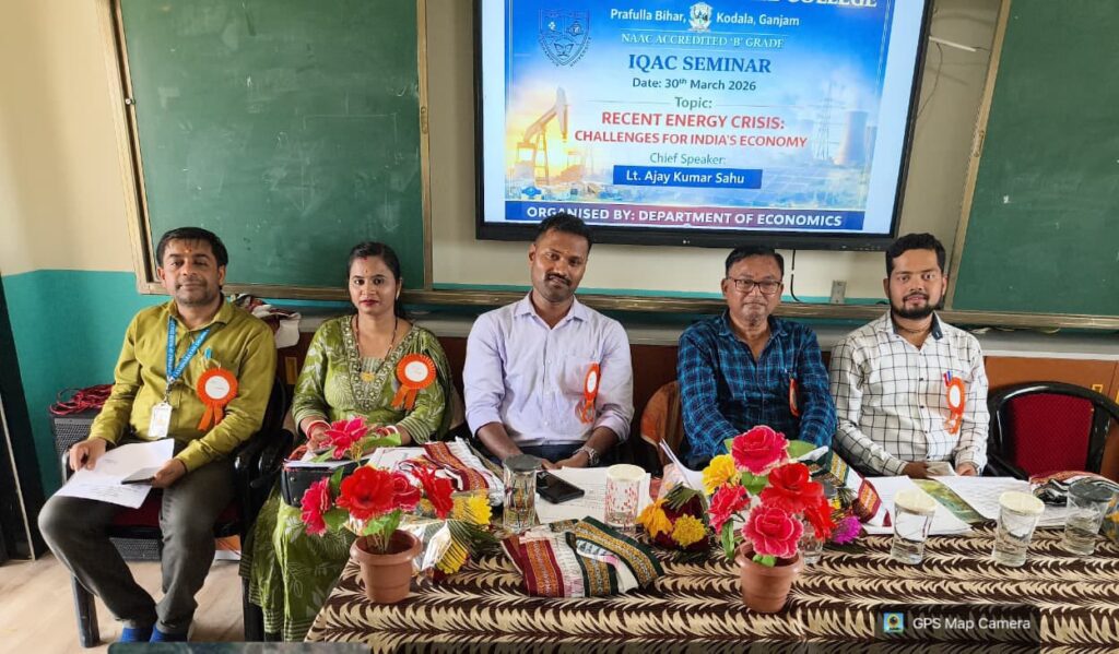 କୋଦଳା, (ଆମ ଓଡିଶା ଖବର):କୋଦଳା ସ୍ଥିତ ଲକ୍ଷ୍ମୀନାରାୟଣ ସ୍ନାତକ ମହାବିଦ୍ୟାଳୟରେ ଅଧ୍ୟକ୍ଷ ଶ୍ରୀଯୁକ୍ତ ରଘୁନାଥ ମୁଦୁଲିଙ୍କ ସଭାପତିତ୍ୱରେ ଅର୍ଥନୀତି ବିଭାଗ ତରଫରୁ ସାମ୍ପ୍ରତିକ ଶକ୍ତି ସଙ୍କଟ : ଭାରତୀୟ ଅର୍ଥନୀତି ପାଇଁ ଏକ ଆହ୍ୱାନ “ବିଷୟବସ୍ତୁ କୁ ନେଇ ଅନ୍ତର୍ନିହିତ ଗୁଣାବଳୀ ବର୍ଦ୍ଧକ ପାଠଚକ୍ର ଅନୁଷ୍ଠିତ ହୋଇଯାଇଛି । କାର୍ଯ୍ୟକ୍ରମ ର ପ୍ରାରମ୍ଭରେ ଅନ୍ତର୍ନିହିତ ଗୁଣାବଳୀ ବର୍ଦ୍ଧକ ସଂଯୋଜକ ଶ୍ରୀମାନ ସପନ କୁମାର ଦାଶ ଉପସ୍ଥିତ ଅତିଥିଙ୍କ ପରିଚୟ ପ୍ରଦାନ କରିଥିଲେ। ପାଠଚକ୍ର ର ଆଭିମୁଖ୍ୟ ସମ୍ପର୍କେ ଅର୍ଥନୀତି ବିଭାଗର ଅଧ୍ୟାପିକା ତଥା ଆଜିର କାର୍ଯ୍ୟକ୍ରମ ର ଆବାହକ ଶ୍ରୀମତୀ ସୁସ୍ମିତା କୁମାରୀ ମହାପାତ୍ର କହିଥିଲେ । ସାଧନାକର୍ମୀ ଭାବେ ପିପୁଲସ କଲେଜ ବୁଗୁଡ଼ା ର ଅର୍ଥନୀତି ବିଭାଗୀୟ ମୁଖ୍ୟ ଲେଫ୍ଟନାଣ୍ଟ ଅଜୟ କୁମାର ସାହୁ ଯୋଗଦେଇ ସାମ୍ପ୍ରତିକ ଶକ୍ତି ସଙ୍କଟ କିପରି ଭାରତୀୟ ଅର୍ଥନୀତି ପ୍ରତି ଏକ ଆହ୍ୱାନ ହୋଇପଡିଛି ଏବଂ ଏହାର ବିକଳ୍ପ ବିଷୟରେ ପୁଙ୍ଖାନୁପୁଙ୍ଖ ଆଲୋଚନା କରିଥିଲେ । ମହାବିଦ୍ୟାଳୟ ର ଅଧ୍ୟକ୍ଷ ଶ୍ରୀଯୁକ୍ତ ରଘୁନାଥ ମୁଦୁଲି ଭାରତରେ ସାମ୍ପ୍ରତିକ ଶକ୍ତି ସଙ୍କଟ ବିଷୟରେ ନିଜର ମତ ରଖିଥିଲେ । ଅର୍ଥନୀତି ବିଭାଗର ଅଧ୍ୟାପକ ଶ୍ରୀ ଆଲୋକ ଜେନା ଧନ୍ୟବାଦ ଅର୍ପଣ କରିଥିଲେ। ପ୍ରାରମ୍ଭିକ ସଂଗୀତ ଯୁକ୍ତ ତିନି ଦ୍ୱିତୀୟ ବର୍ଷ ଛାତ୍ରୀ ସୁଶ୍ରୀ ପଦ୍ମିନୀ ବେହେରା ଓ ପ୍ରିୟଙ୍କା ପାଢୀ ଅନ୍ତିମ ସଂଗୀତ ଯୁକ୍ତ ତିନି ପ୍ରଥମ ବର୍ଷ ଛାତ୍ରୀ ସୁଶ୍ରୀ ଆରତୀ ପ୍ରଧାନ, ଜସ୍ମିନ ମେହେଣା ଓ ଅଙ୍କିତା ସ୍ୱାଇଁ ଗାନ କରିଥିଲେ। ଯୁକ୍ତ ତିନି ପ୍ରଥମ, ଦ୍ୱିତୀୟ ଓ ଶେଷ ବର୍ଷ ର ଅନେକ ଛାତ୍ରଛାତ୍ରୀ ସେମାନଙ୍କ ସନ୍ଦର୍ଭ ଉପସ୍ଥାପନା କରିଥିଲେ ଓ ସେମାନଙ୍କୁ ପ୍ରମାଣପତ୍ର ଅତିଥିମାନଙ୍କ ଦ୍ୱାରା ପ୍ରଦାନ କରାଯାଇଥିଲା ।