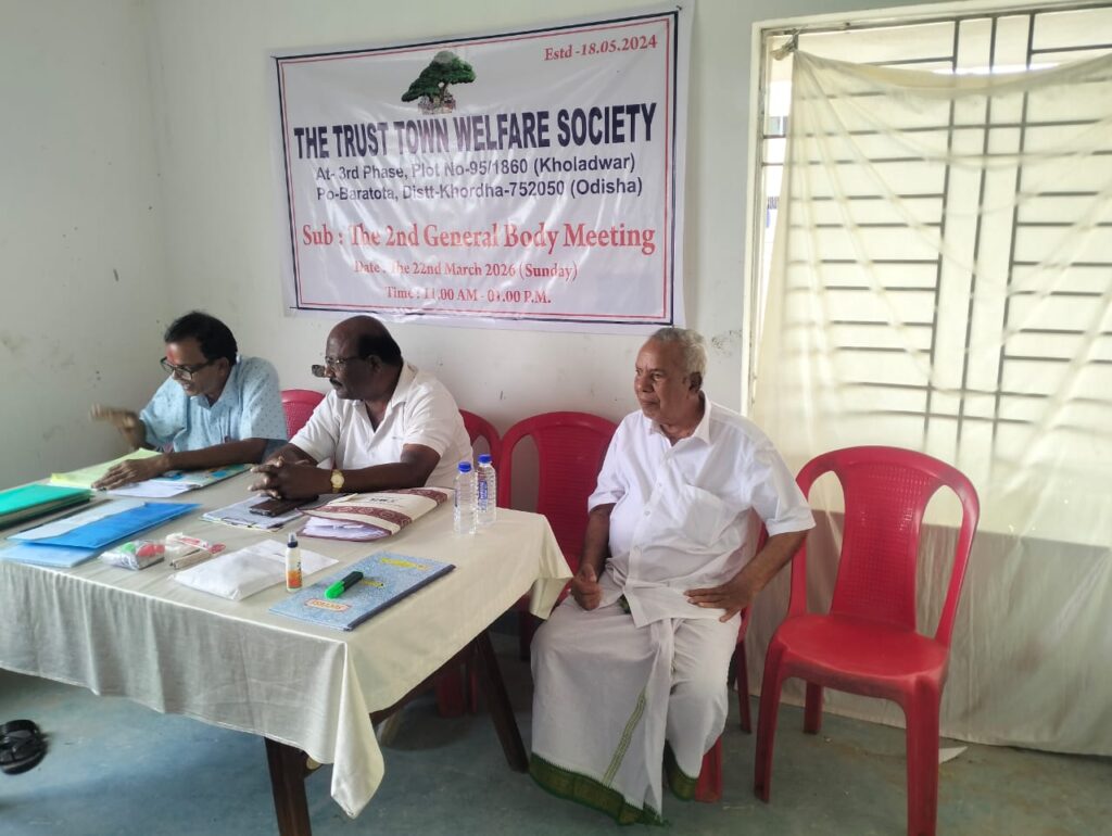 ট্রাস্ট: টাউন ওয়েলফেয়ার সোসাইটির দ্বিতীয় সাধারণ সভাটি 29 শে মার্চ, 2026 (রবিবার) সকাল 11 টা থেকে 1:00 টা পর্যন্ত অনুষ্ঠিত হয়েছিল। সভায় সভাপতিত্ব করেন সমিতির সভাপতি কৃষ্ণচন্দ্র বেহরা। সচিব বিভিন্ন কল্যাণমূলক সংস্থার বিষয়গুলি নিয়ে একটি বিস্তারিত উপস্থাপনা দেন। আগামী দিনে কল্যাণমূলক সংস্থাগুলির নিবন্ধন নিয়ে বিশেষ আলোচনা হয়েছে। উপস্থিত সদস্যরা তাঁদের মতামত জানান এবং রাষ্ট্রপতি ও সচিবকে নিবন্ধন প্রক্রিয়া ত্বরান্বিত করার অনুরোধ জানান।