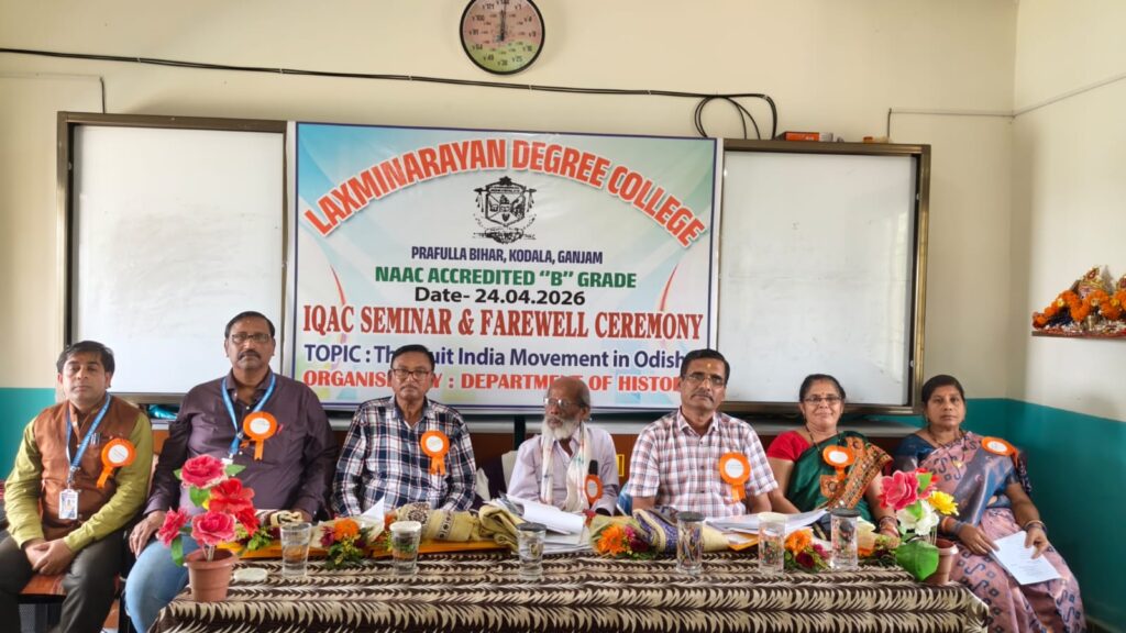 କୋଦଳା, (ଆମ ଓଡିଶା ଖବର ):କୋଦଳା ସ୍ଥିତ ଲକ୍ଷ୍ମୀନାରାୟଣ ସ୍ନାତକ ମହାବିଦ୍ୟାଳୟରେ ଅଧ୍ୟକ୍ଷ ଶ୍ରୀଯୁକ୍ତ ରଘୁନାଥ ମୁଦୁଲିଙ୍କ ସଭାପତିତ୍ୱରେ ଇତିହାସ ବିଭାଗ ତରଫରୁ ” ଓଡ଼ିଶାରେ ଭାରତଛାଡ ଆନ୍ଦୋଳନ “ବିଷୟବସ୍ତୁ କୁ ନେଇ ଅନ୍ତର୍ନିହିତ ଗୁଣାବଳୀ ବର୍ଦ୍ଧକ ପାଠଚକ୍ର ଅନୁଷ୍ଠିତ ହୋଇଯାଇଛି । କାର୍ଯ୍ୟକ୍ରମ ର ପ୍ରାରମ୍ଭରେ ଅନ୍ତର୍ନିହିତ ଗୁଣାବଳୀ ବର୍ଦ୍ଧକ ସଂଯୋଜକ ଶ୍ରୀମାନ ସପନ କୁମାର ଦାଶ ଉପସ୍ଥିତ ଅତିଥିଙ୍କ ପରିଚୟ ପ୍ରଦାନ କରିଥିଲେ lପାଠଚକ୍ର ର ଆଭିମୁଖ୍ୟ ସମ୍ପର୍କେ ଇତିହାସ ବିଭାଗର ବିଭାଗୀୟ ମୁଖ୍ୟ ତଥା ଆଜିର କାର୍ଯ୍ୟକ୍ରମ ର ଆବାହକ ଶ୍ରୀ ବିନୋଦ କୁମାର ମିଶ୍ର କହିଥିଲେ । ସାଧନାକର୍ମୀ ଭାବେ ଇନ୍ଦିରା ମେମୋରିଆଲ ସ୍ନାତକ ମହାବିଦ୍ୟାଳୟ, ଚାନ୍ଦିପୁଟ, ଗଜପତି ର ଇତିହାସ ବିଭାଗୀୟ ମୁଖ୍ୟ ଶ୍ରୀ ପୂର୍ଣ୍ଣଚନ୍ଦ୍ର ତ୍ରିପାଠୀ ଯୋଗଦେଇ ଓଡ଼ିଶାରେ ଭାରତଛାଡ ଆନ୍ଦୋଳନବିଷୟରେ ଆଲୋକପାତ କରିଥିଲେ। ସମ୍ମାନନୀୟ ଅତିଥି ଭାବେ ବିଶିଷ୍ଟ ଗବେଷକ ଓ ପ୍ରତ୍ନତତ୍ୱବିତ, ବିଷମକଟକ, ରାୟଗଡା ର ଶ୍ରୀ ଶ୍ରୀରଙ୍ଗ ନାୟକ ଯୋଗଦେଇ ଓଡ଼ିଶାରେ ଭାରତଛାଡ ଆନ୍ଦୋଳନ ର ବିଭିନ୍ନ ଦିଗ ବିଷୟରେ କହିଥିଲେ । ମହାବିଦ୍ୟାଳୟ ର ଅଧ୍ୟକ୍ଷ ଶ୍ରୀଯୁକ୍ତ ରଘୁନାଥ ମୁଦୁଲି ଓଡ଼ିଶାରେ ଭାରତଛାଡ ଆନ୍ଦୋଳନରେ ନାରୀ ମାନଙ୍କ ଭୂମିକା ବିଷୟରେ ସୂଚନା ଦେଇଥିଲେ । ପ୍ରଶାସନିକ ଅଧିକାରୀ ଶ୍ରୀମତୀ ରଞ୍ଜୁବାଳା ନନ୍ଦ ଓ ଇତିହାସ ବିଭାଗର ଅଧ୍ୟାପିକା ଶ୍ରୀମତୀ ଗୃହଲକ୍ଷ୍ମୀ ସାହୁ ଆଜିର କାର୍ଯ୍ୟକ୍ରମରେ ଅନ୍ୟତମ ଅତିଥି ରୂପେ ଯୋଗଦେଇ ଲକ୍ଷ୍ମଣ ନାୟକ ଙ୍କ ଅବଦାନ ବିଷୟରେ କହିଥିଲେ । ପ୍ରାରମ୍ଭିକ ସଂଗୀତ ଯୁକ୍ତ ତିନି ଦ୍ୱିତୀୟ ବର୍ଷ ଛାତ୍ରୀ ସୁଶ୍ରୀ ଦୀପା ମଲ୍ଲିକ ଓ ପ୍ରଥମ ବର୍ଷ ଛାତ୍ରୀ ସୁଶ୍ରୀ ରୋଜି ମୁଦୁଲି ଗାନ କରିଥିଲେ। ଯୁକ୍ତ ତିନି ପ୍ରଥମ, ଦ୍ୱିତୀୟ ଓ ଶେଷ ବର୍ଷ ର ଅନେକ ଛାତ୍ରଛାତ୍ରୀ ସେମାନଙ୍କ ସନ୍ଦର୍ଭ ଉପସ୍ଥାପନା କରିଥିଲେ ଓ ସେମାନଙ୍କୁ ପ୍ରମାଣପତ୍ର ଅତିଥିମାନଙ୍କ ଦ୍ୱାରା ପ୍ରଦାନ କରାଯାଇଥିଲା । ଆଜିର କାର୍ଯ୍ୟକ୍ରମକୁ ଯୁକ୍ତ ତିନି ଦ୍ୱିତୀୟ ବର୍ଷ ଛାତ୍ର ଅମର ନାୟକ, ଦ୍ୱିତୀୟ ବର୍ଷ ଛାତ୍ରୀ ସୁଶ୍ରୀ କାଜଲ ବିଷୋୟୀ ଓ ପ୍ରଥମ ବର୍ଷ ଛାତ୍ରୀ ସୁଶ୍ରୀ ସୋନାଲି ମହାପାତ୍ର ପରିଚାଳନା କରିଥିଲେ । ଯୁକ୍ତ ତିନି ଶେଷ ବର୍ଷ ଛାତ୍ର ଓ ଛାତ୍ରୀଙ୍କୁ ବିଦାୟ କାଳୀନ ଶୁଭେଛା ଜଣାଇ ଯୁକ୍ତ ତିନି ପ୍ରଥମ ବର୍ଷ ଛାତ୍ରୀ ସୁଶ୍ରୀ କାଜଲ ମିଶ୍ରଙ୍କ ଦ୍ୱାରା ଅତିଥି ମାନଙ୍କୁ ଧନ୍ୟବାଦ ଅର୍ପଣ କରାଯାଇଥିଲା ।