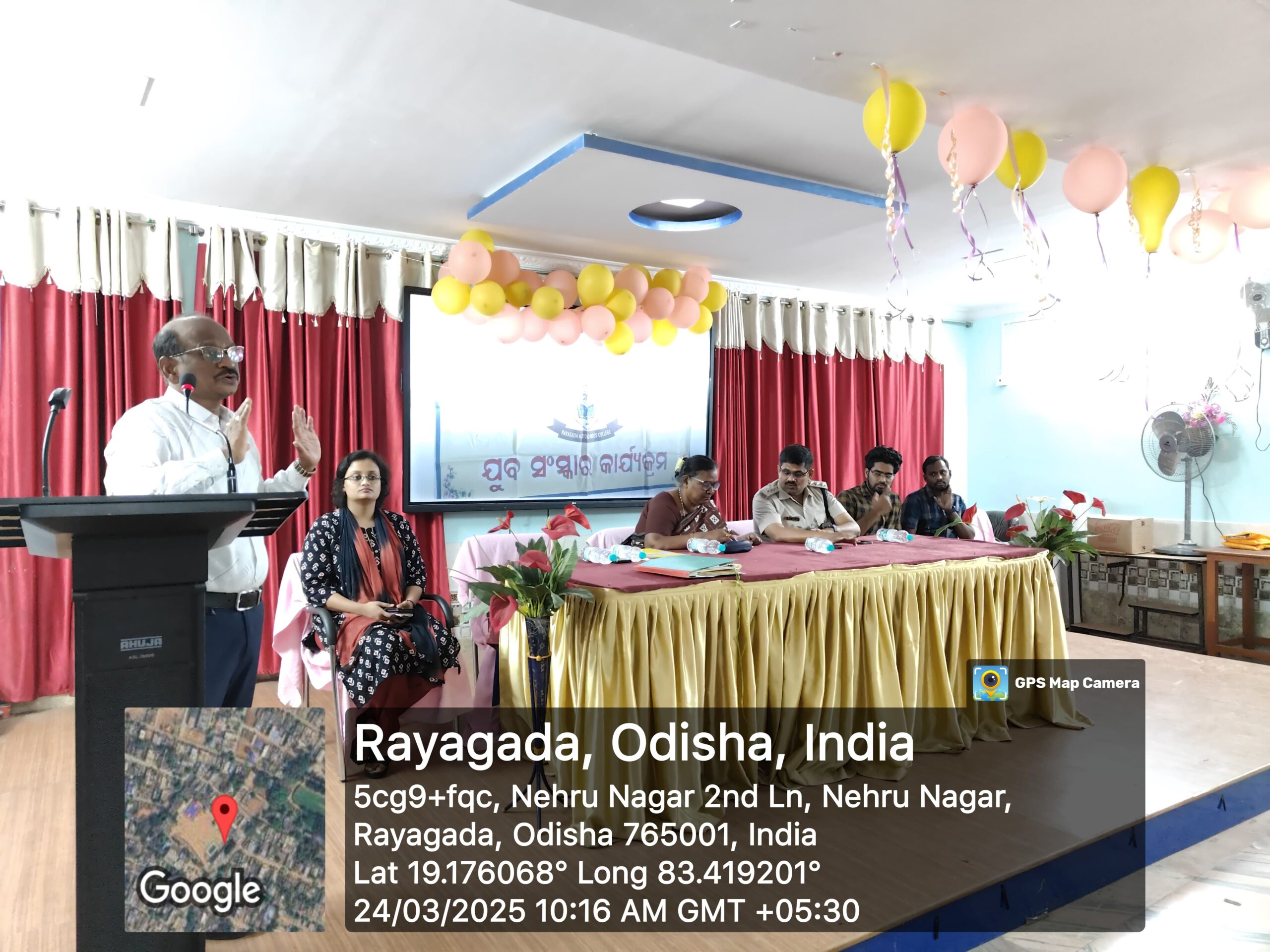 ରାୟଗଡା,:- (ଆମ ଓଡିଶା ଖବର )ଓଡିଶା ଉଚ୍ଚ ମାଧ୍ୟମିକ ଶିକ୍ଷା ବିଭାଗର ନିର୍ଦ୍ଦେଶନାଏ, ରାୟଗଡା ଅଟୋନୋମସ୍ କଲେଜରେ ମାସିକ ଯୁବ ସଂସ୍କାର କାର୍ଯ୍ୟକ୍ରମ ଆୟୋଜିତ ହୋଇଥିଲା। ଏହି ସଭାରେ ବାଳ୍ୟ ବିବାହ ନିଷେଧ ଏବଂ ତାହାର ସ୍ୱାସ୍ଥ୍ୟ ସମସ୍ୟାଗୁଡ଼ିକ ବିଷୟରେ ଉଲ୍ଲେଖନୀୟ ଉପସ୍ଥାପନ କରିଥିଲେ ରାୟଗଡା SDPO ଶ୍ରୀ ଗୌରହରି ସାହୁ ଏବଂ ସାଧାରଣ ଚିକିତ୍ସକ ଡ଼ି.ଭି.ଏଲ.ଏନ୍. ରାଜୁ।