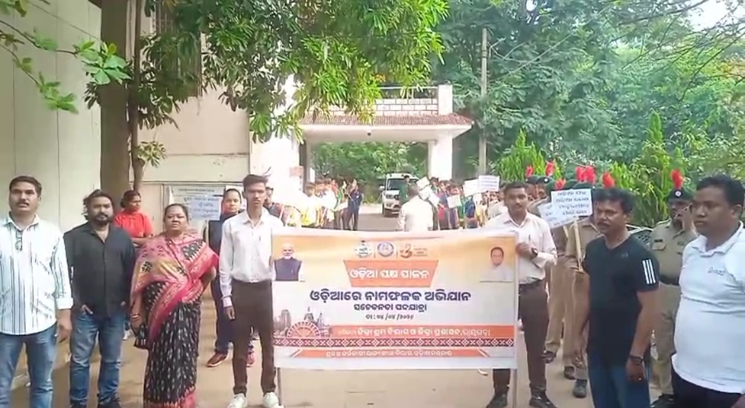 ଏହି ଅବସରରେ ଜିଲ୍ଲା ପ୍ରଶାସନ ଓ ଶ୍ରମ କାର୍ଯ୍ୟାଳୟ ରାୟଗଡ଼ ଙ୍କ ମିଳିତ ସହଯୋଗରେ ଆଜି ଅର୍ଥାତ୍ ୦୪-୦୪-୨୦୨୫ ତାରିଖ ସକାଳ ୭.୩୦ମି ସମୟରେ ରାୟଗଡ଼ ସହର ରେ ଅବସ୍ଥିତ ସମସ୍ତ ଦୋକାନ ଓ ବାଣିଜ୍ୟ ପ୍ରତିଷ୍ଠାନ ଗୁଡିକରେ ଓଡ଼ିଆ ଭାଷାରେ ନାମ ଫଳକ ପ୍ରଦର୍ଶନ ନିମନ୍ତେ ଏକ ସଚେତନତା ପଦଯାତ୍ରା ଅଭିଯାନ ଜିଲ୍ଲାପାଳ ଙ୍କ କାର୍ଯ୍ୟାଳୟରୁ ଆରମ୍ଭ ହୋଇ ରାୟଗଡ଼ ସହର ବିଭିନ୍ନ ସ୍ଥାନ ପରିକ୍ରମା କରି ଶ୍ରମ କାର୍ଯ୍ୟାଳୟ ପାଖରେ ଶେଷ ହୋଇଛି।