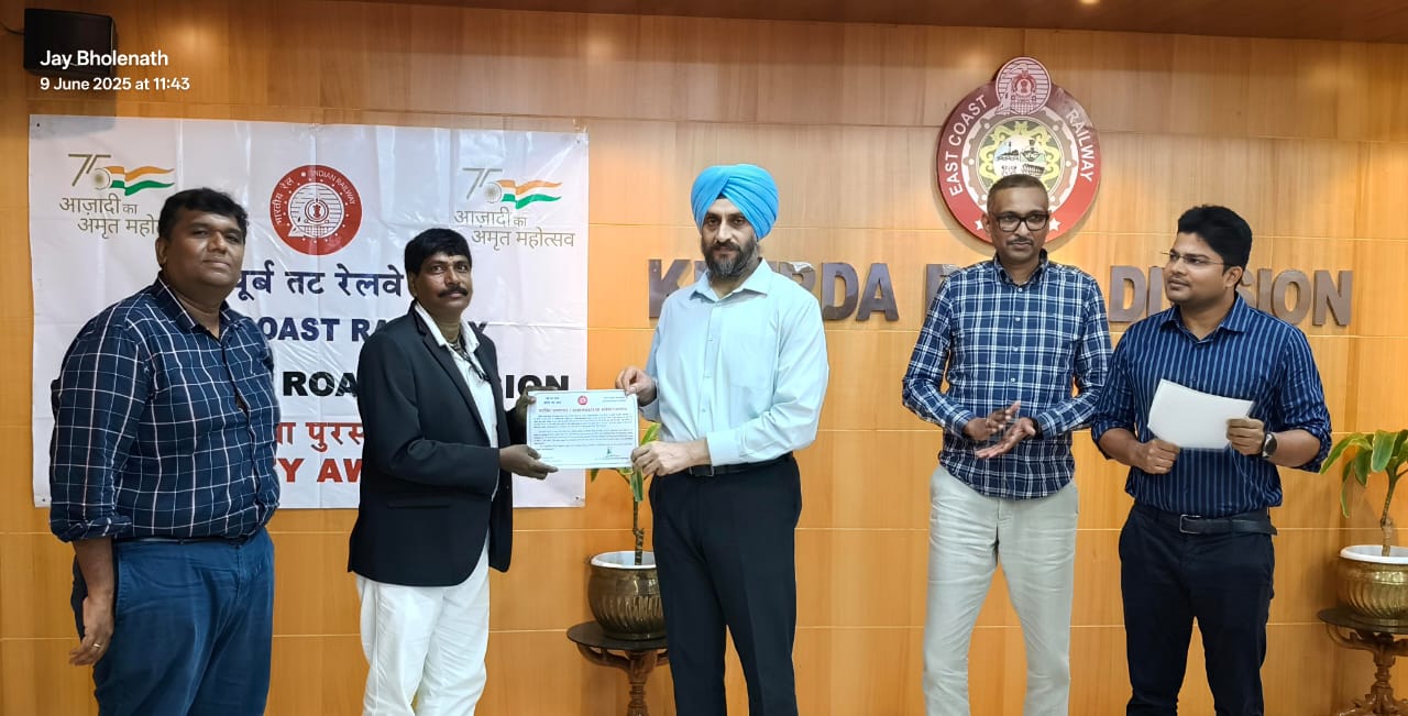 ପୁରୀ ଜିଲ୍ଲା(ଆମ ଓଡିଶା ଖବର )ଡେ଼ଲାଙ୍ଗ ତା ୦୯-୦୬-୨୫ଖୋର୍ଦ୍ଧାରୋଡ଼ ମଣ୍ଡଳ ରେଳ ପ୍ରବନ୍ଧକ, ଶ୍ରୀ ଏଚ୍.ଏସ୍. ବାଜୱା, କର୍ତ୍ତବ୍ୟ ପ୍ରତି ସଚ୍ଚୋଟତା ଏବଂ ନିଷ୍ଠା ପର ସେବା ପାଇଁ, ଡିଭିଜନର ଚାରି ଜଣ ରେଳ କର୍ମଚାରୀଙ୍କୁ ସୁରକ୍ଷା ପୁରସ୍କାରରେ ସମ୍ମାନିତ କରିଛନ୍ତି । ଶ୍ରୀ ବାଜୱା, ଏହି କର୍ମଚାରୀଙ୍କ ଅବିସ୍ମରଣୀୟ ଉତ୍ସର୍ଗୀକୃତ କାର୍ଯ୍ୟର ପ୍ରଶଂସା କରିଥିଲେ ଏବଂ କର୍ତ୍ତବ୍ୟ ପାଳନ କରିବା ସମୟରେ ସତର୍କ, ସଜାଗ ଏବଂ ସେମାନଙ୍କର ଦାୟିତ୍ୱ ପ୍ରତି ସମର୍ପିତ ରହିବାକୁ ଅବଗତ କରିଥିଲେ।