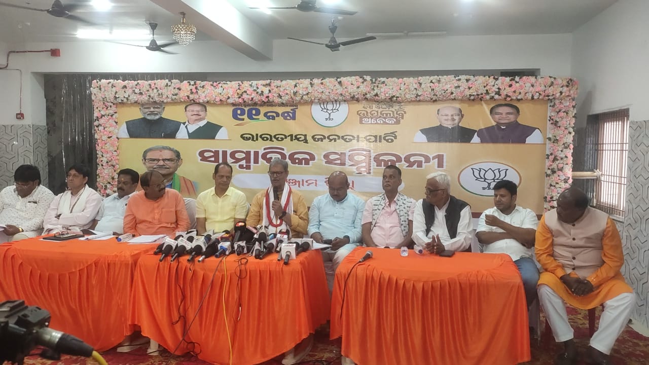 ବ୍ରହ୍ମପୁର,ଆମ ଓଡ଼ିଶା ଖବର )୧୨/୬ : ସେବା, ସୁଶାସନ ଓ ଗରିବ କଲ୍ୟାଣ ପାଇଁ ସମର୍ପିତ କେନ୍ଦ୍ରସମପି ସରକାରଙ୍କ ୧୧ ବର୍ଷ ଓ ରାଜ୍ୟ ସରକାରଙ୍କ ୧ ବର୍ଷ ପୂର୍ତ୍ତି ଅବସରରେ ବ୍ରହ୍ମପୁର ମହାମାୟୀ କଲେଜ ନିକଟସ୍ଥ ଛାୟା କଲ୍ୟାଣ ମଣ୍ଡପ ଠାରେ ଭାରତୀୟ ଜନତା ପାର୍ଟି ପକ୍ଷରୁ ଏକ “ସାମ୍ବାଦିକ ସମ୍ମିଳନୀ” ଅନୁଷ୍ଠିତ ହୋଇଯାଇଛି ।