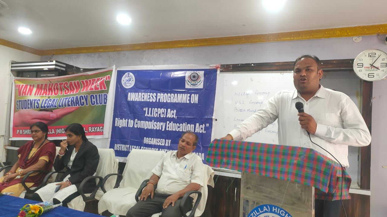 ରାୟଗଡା ଜିଲ୍ଲା(ଆମ ଓଡିଶା ଖବରI) ଆଇନ୍ ସେବା ପ୍ରାଧିକରଣ ର ଅଧ୍ୟକ୍ଷ ତଥା ଜିଲ୍ଳା ଦୌରା ଜଜ୍ ଶ୍ରୀ ସତ୍ୟନାରାୟଣ ଷଡଙ୍ଗୀ ଙ୍କ ପରାମର୍ଶ କ୍ରମେ ଜିଲ୍ଲା ଆଇନ୍ ସେବା ପ୍ରାଧିକରଣ ଆନୁକୁଲ୍ୟରେ ଜିଲ୍ଲା ଆଇନ୍ ସେବା ପ୍ରାଧିକରଣ ର ସଚିବ ଶ୍ରୀ ସୁବ୍ରତ ଆଚାର୍ଯ୍ୟ ଙ୍କ ଅଧ୍ୟକ୍ଷତାରେ ଅଦ୍ୟ ତା ୦୭.୦୭.୨୦୨୫ ରିଖ ସୋମବାର ଅପରାହ୍ନ ୩.୦୦ ସମୟରେ ସ୍ଥାନୀୟ ରାୟଗଡା ଜି.ସି.ଡି(ଜିଲ୍ଲା) ହାଇସ୍କୁଲ ପରିସରରେ ଜିଲ୍ଲା ଆଇନ ସେବା ପ୍ରାଧିକରଣ,ରାୟଗଡା ତରଫରୁ ବୃକ୍ଷରୋପଣ କରାଯିବା ସହିତ “J.J.(CPC) Act and Right to Compulsory Education Act” ଉପରେ ଏକ ଆଇନ ସଚେତନତା ଶିବିର ଅନୁଷ୍ଟିତ ହୋଇଯାଇଛି I ଅନ୍ୟ ପ୍ରମୁଖ ଅତିଥି ମାନଙ୍କ ମଧ୍ୟରେ ରାୟଗଡା ବାର ଆସୋସିଏସନର ଆଇନଜୀବି ଦେବରାଜ ନାୟକ, ଭାରତୀ ତ୍ରିପାଠି, ରାୟଗଡା ଜି.ସି.ଡି (ଜିଲ୍ଲା) ହାଇସ୍କୁଲ ର ଦାୟିତ୍ୱରେ ଥିବା ପ୍ରଧାନ ଶିକ୍ଷୟିତ୍ରୀ ଙ୍କ ସମେତ ଅନ୍ୟ ଶିକ୍ଷକ ଓ ଛାତ୍ର ଛାତ୍ରୀ ପ୍ରମୁଖ ଉପସ୍ଥିତ ଥିଲେ I ଜିଲ୍ଲା ଆଇନ ସେବା ପ୍ରାଧିକରଣ ର ସଚିବ ଶ୍ରୀ ସୁବ୍ରତ ଆଚାର୍ଯ୍ୟ ନିଜର ବକ୍ତବ୍ୟରେ J.J.(CPC) Act and Right to Compulsory Education Act” ର ଉଦ୍ଦେଶ୍ୟ, ଆଭିମୁଖ୍ୟ, ନ୍ୟାୟିକ ବ୍ୟବସ୍ଥା ଓ ସେମାନଙ୍କ ପାଇଁ ଆଇନରେ ଉଦ୍ଧିଷ୍ଟ ଥିବା ବିଭିନ୍ନ ଧାରା ଉପରେ ଆଲୋକପାତ କରିଥିଲେ I ପରିଶେଷରେ ଉପସ୍ଥିତ ଥିବା ଅନ୍ୟ ଅତିଥିମାନେ ନିଜ ନିଜର ବକ୍ତବ୍ୟରେ NALSA ର ବିଭିନ୍ନ ଯୋଜନା ଉପରେ ଉପସ୍ଥିତ ଥିବା ଅଂଶଗ୍ରହଣକାରୀମାନଙ୍କୁ ବିସୃତ ଭାବରେ ସଚେତନ କରିଥିଲେ I ପରିଶେଷରେ ଜିଲ୍ଲା ଆଇନ ସେବା ପ୍ରାଧିକରଣର ସଚିବ ଶ୍ରୀ ସୁବ୍ରତ ଆଚାର୍ଯ୍ୟଙ୍କ ତତ୍ବାବଧାନରେ ଛାତ୍ର ଛାତ୍ରୀ ମାନଙ୍କ ଦ୍ୱାରା ବିଭିନ୍ନ ପ୍ରକାରର ଚାରା ରୋପଣ କରାଯାଇଛି I ସର୍ବୋପରି ଏହି କାର୍ଯ୍ୟକ୍ରମରେ ରାୟଗଡା ଜି.ସି.ଡି(ଜିଲ୍ଲା) ହାଇସ୍କୁଲ ର ଛାତ୍ର ଛାତ୍ରୀ ଓ ଓ ମାନ୍ୟବର ଅତିଥି ମାନଙ୍କର ଉପସ୍ଥିତି ଏବଂ ଜିଲ୍ଲା ଆଇନ ସେବା ପ୍ରାଧିକରଣର ସଚିବ ଶ୍ରୀ ସୁବ୍ରତ ଆଚାର୍ଯ୍ୟ ଙ୍କର ପ୍ରତ୍ୟକ୍ଷ ତତ୍ତ୍ବାବଧାନରେ କାର୍ଯ୍ୟକ୍ରମଟି ସଫଳତାର ସହିତ ଶେଷ ହୋଇଛି I