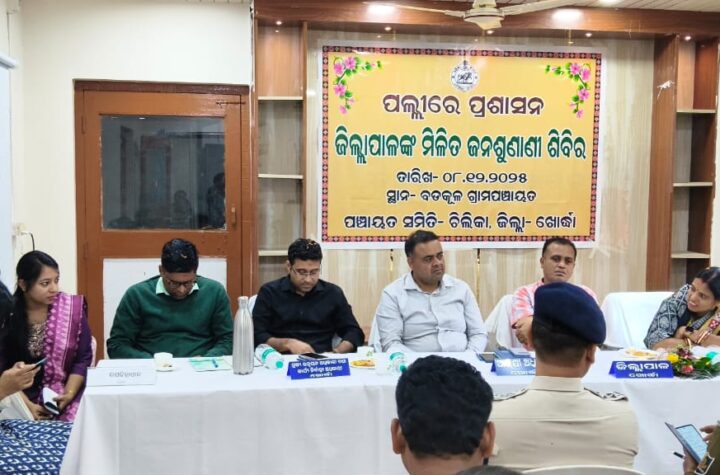 ଖୋର୍ଦ୍ଧା : ତା୦୮/୧୨ ସୋମବାର ପୂର୍ବାହ୍ନରେ ପଲ୍ଲୀରେ ପ୍ରଶାସନ ଜିଲ୍ଲା ପ୍ରଶାସନ ସ୍ତରୀୟ ଯୁଗ୍ମ ଅଭିଯୋଗ ଶୁଣାଣି ଚିଲିକା...
