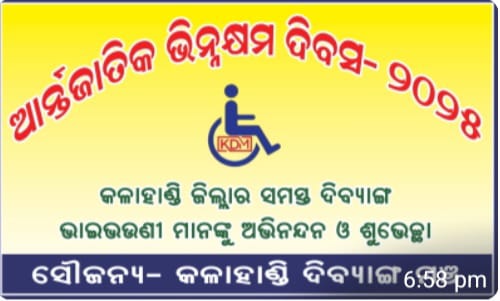 କଳାହାଣ୍ଡି ୦୩/୧୨(ଆମ ଓଡିଶା ଖବର)ଭବାନୀପାଟଣା ସ୍ତରୀୟ ଆନ୍ତର୍ଜାତିକ ଭିନ୍ନକ୍ଷମ ଦିବସ ଆଜି ପାଳିତ ହୋଇଯାଇଛି। ଏହି ଅବସରରେ ଭିନ୍ନକ୍ଷମ...