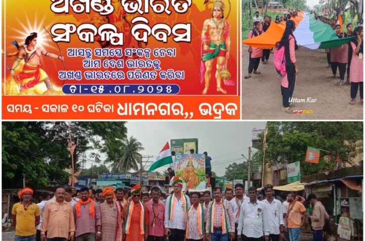 ଭଦ୍ରକ ଜିଲ୍ଲା (ଆମ ଓଡିଶା ଖବର )ଧାମନଗର ପ୍ରଖଣ୍ଡ ବଜରଙ୍ଗ ଦଳ ତରଫରୁ ଅଖଣ୍ଡ ଭାରତ ସଂକଳ୍ପ ଦିବସ...