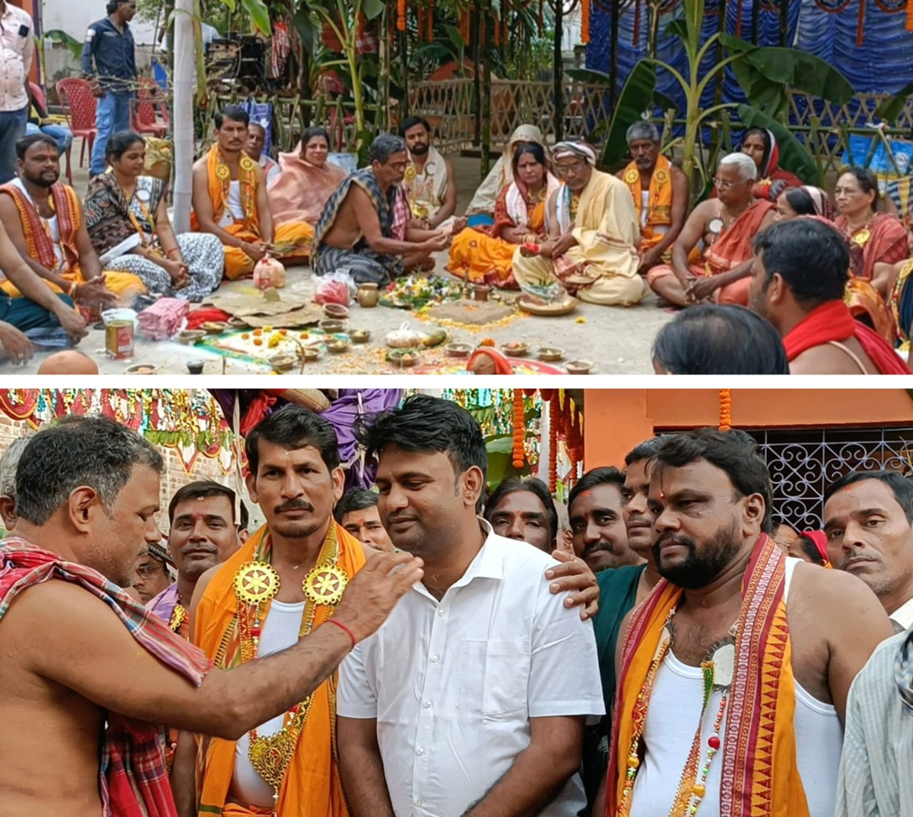 କୋଦଳା, (ଖବର): କୋଦଳା ଏନଏସି ରେ ଥିବା ମା’ ଗ୍ରାମଦେବୀ ଶ୍ରୀଶ୍ରୀଶ୍ରୀ ହନୁମନ୍ତ ନାରାୟଣୀଙ୍କ ନୂତନ ସିଂହଦ୍ୱାର ଦଶମହାବତାର ବିଗ୍ରହ ପ୍ରତିଷ୍ଠା ଉତ୍ସବ ମହା ସମାରୋହରେ ପାଳିତ ହେଉଛି | ଏହି ଉତ୍ସବ ତିନି ଦିନ ଧରି ଚାଲିବାକୁ ଥିବା ବେଳେ ଶନିବାର ଦିନ ପ୍ରତିଷ୍ଠା କାର୍ଯ୍ୟର ପ୍ରାରମ୍ଭିକ ପୂଜା ବିଦ୍ଧି ତଥା କଳସ ଯାତ୍ରା ବେଶ ଭକ୍ତିମୟ ପରିବେଶରେ ଅନୁଷ୍ଠିତ ହୋଇ ଯାଇଛି | ମା’ ଙ୍କ ମନ୍ଦିର ପରିସରରେ ମୁଖ୍ୟ ପୁରୋହିତ ବୁଲୁ, ବିରୁପାକ୍ଷ ତାରା କର, ନାଗା ପତି ଙ୍କ ସମେତ ନୈଷ୍ଠୀକ ବ୍ରାହ୍ମଣ, ପୁରୋହିତଙ୍କ ମନ୍ତ୍ର ଧ୍ୟ୍ୟନିରେ ମନ୍ଦିର ପରିବେଶ ପ୍ରକମ୍ପିତ ହୋଇ ଉଠିଥିଲା | ଏହି ଯଜ୍ଞରେ କର୍ତା ଭାବେ ହରିହର ଦାଶ ଓ କର୍ତ୍ତୀ ଭାବେ ତାଙ୍କ ଧର୍ମପତ୍ନୀ ଶୈଳେନ୍ଦ୍ରି ଦାଶ ଯୋଗ ଦେଇ ଅଞ୍ଚଳବାସୀଙ୍କ ନିମନ୍ତେ ମାଙ୍କ ପାଖରେ ନିଜର ପୂଜାବିଦ୍ଧି ସମ୍ପନ କରିଥିଲେ | ଅପରାହ୍ନରେ ଶହ ଶହ ମହିଳାଙ୍କ ଗହଣରେ କଳସ ଶୋଭାଯାତ୍ରା ଅନୁଷ୍ଠିତ ହୋଇଥିଲା | ଏହି ମନ୍ଦିରର ଟ୍ରଷ୍ଟି ଗୋପାଳ କୃଷ୍ଣ ସାହୁଙ୍କ ସମେତ ମନ୍ଦିର କମିଟିର ବିପୁଳ ସହଯୋଗ ଓ ବଳିଷ୍ଠ ଅବଦାନରେ ଆୟୋଜିତ ହୋଇଥିବା ଏହି ମହାନ କାର୍ଯ୍ୟରେ କୋଦଳା ଅଧ୍ୟକ୍ଷ ଶ୍ରୀ ସୂର୍ଯ୍ୟ ନାରାୟଣ ନାୟକ ଙ୍କ ସମେତ ତାଙ୍କ ଧର୍ମପତ୍ନୀ ଅର୍ଚନା ନାୟକ ଯୋଗଦେଇ କଳସ ଯାତ୍ରାରେ ସାମିଲ ହେବା ସହ ମା ଙ୍କ ଆଶୀର୍ବାଦ ଲାଭ କରିଥିଲେ | ଏହା ସହ ମହିଳାଙ୍କ କଳସ ଯାତ୍ରାରେ କୋଦଳା ନଗର ପରିକ୍ରମା କରି ଦଣ୍ଡେଶ୍ଵର ମନ୍ଦିରରୁ ଜଳ ଭର୍ତି କଳସ ଯାତ୍ରାରେ ସାମିଲ ହୋଇଥିଲେ | ଏହି ହୋମ ଯଜ୍ଞ କାର୍ଯ୍ୟ ତିନି ଦିନ ଧରି ଚାଲିବା ନେଇ ସୂଚନା ମିଳିଛି | ଏହି ଦିନ ମାନଙ୍କରେ ବହୁ ନେତା, ସ୍ଥାନୀୟ ବିଧାୟକ ଶ୍ରୀ ପ୍ରତାପ ନାୟକ ଯୋଗ ଦେବାର କାର୍ଯ୍ୟକ୍ରମ ଥିବା ସୂଚନା ମିଳିଛି | ଏହି ଧାର୍ମିକ କାର୍ଯ୍ୟରେ ଭକ୍ତ ସତ୍ୟ ପାତ୍ର ବିଶେଷ ସହଯୋଗ କରିଥିଲେ |