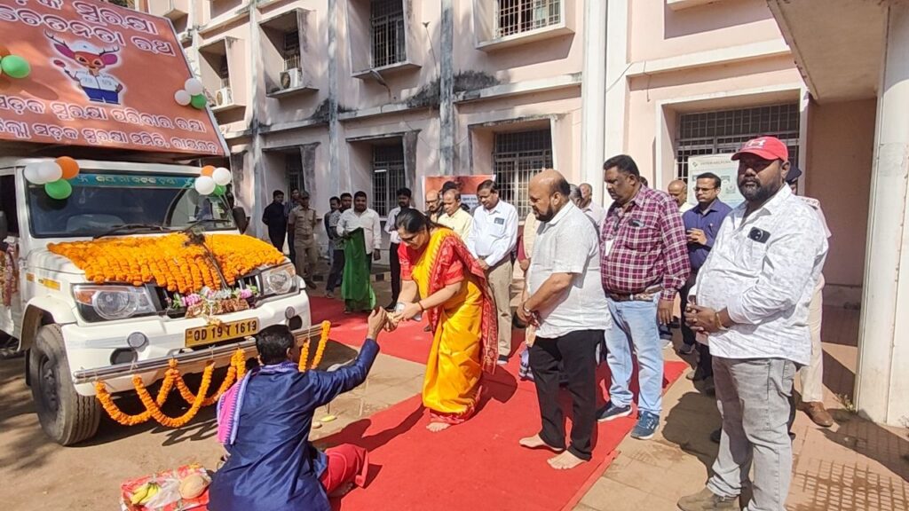 ରାୟଗଡ:-(ଆମ ଓଡ଼ିଶା ଖବର )ତା. ୦୧/୦୧- ଆଜି ଜିଲ୍ଲାପାଳ ଶ୍ରମତୀ ପାରୁଲ ପଟାୱରୀ ସଡ଼କ ସୁରକ୍ଷା ରଥକୁ ସବୁଜ ପତାକା ଦେଖାଇ ଶୁଭାରମ୍ଭ କରିଛନ୍ତି l ଜିଲ୍ଲାରେ ସଡ଼କ ଦୁର୍ଘଟଣା ମାମଲା ହ୍ରାସ କରିବା ନିମନ୍ତେ ସଡ଼କ ସୁରକ୍ଷା ସପ୍ତାହ ଆସନ୍ତା ଜାନୁଆରୀ ଆଜି ଠାରୁ ଜାନୁଆରୀ ଆସନ୍ତା ତା.୭ରିଖ ଯାଏଁ ଜିଲ୍ଲାରେ ପାଳନ କରାଯିବ l ଏହି ରଥ ଜିଲ୍ଲାର ପ୍ରମୁଖ ସ୍ଥାନକୁ ଯାଇ ସଚେତନତା କରିବ l
