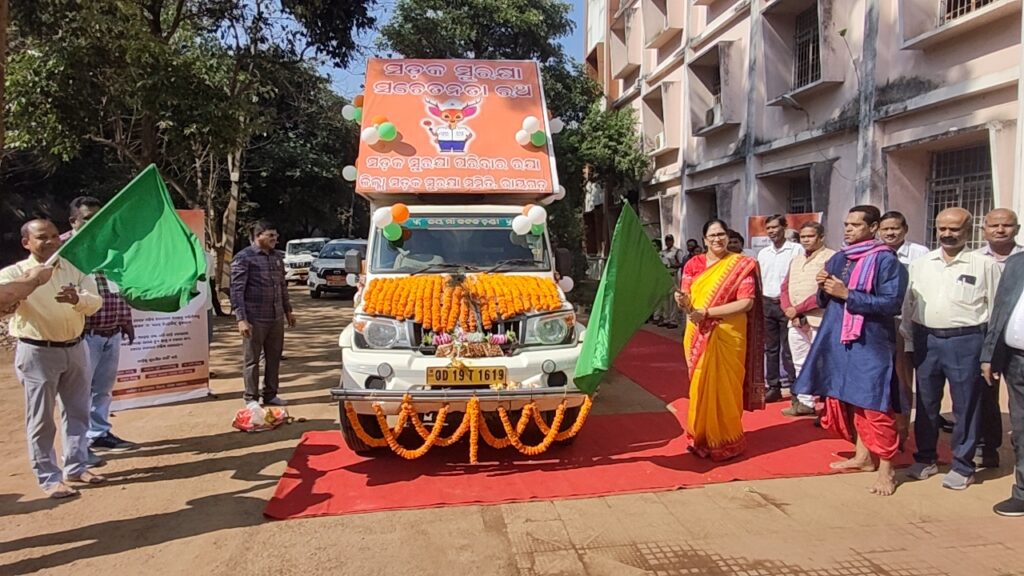 ରାୟଗଡ:-(ଆମ ଓଡ଼ିଶା ଖବର )ତା. ୦୧/୦୧- ଆଜି ଜିଲ୍ଲାପାଳ ଶ୍ରମତୀ ପାରୁଲ ପଟାୱରୀ ସଡ଼କ ସୁରକ୍ଷା ରଥକୁ ସବୁଜ ପତାକା ଦେଖାଇ ଶୁଭାରମ୍ଭ କରିଛନ୍ତି l ଜିଲ୍ଲାରେ ସଡ଼କ ଦୁର୍ଘଟଣା ମାମଲା ହ୍ରାସ କରିବା ନିମନ୍ତେ ସଡ଼କ ସୁରକ୍ଷା ସପ୍ତାହ ଆସନ୍ତା ଜାନୁଆରୀ ଆଜି ଠାରୁ ଜାନୁଆରୀ ଆସନ୍ତା ତା.୭ରିଖ ଯାଏଁ ଜିଲ୍ଲାରେ ପାଳନ କରାଯିବ l ଏହି ରଥ ଜିଲ୍ଲାର ପ୍ରମୁଖ ସ୍ଥାନକୁ ଯାଇ ସଚେତନତା କରିବ l